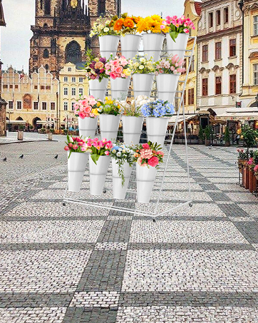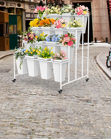 Our 4 Layers Flower Display Stand are equipped with wheels at the bottom, which can be easily moved indoors or outdoors.