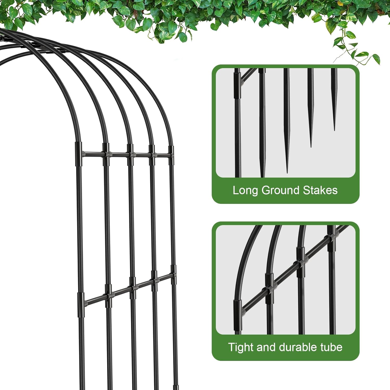 Garden Arch Trellis, Metal Arch Trellis for Climbing Plants Outdoor, Yard, Garden, Climbing Plants w/Decorative Wire Lattice - Black