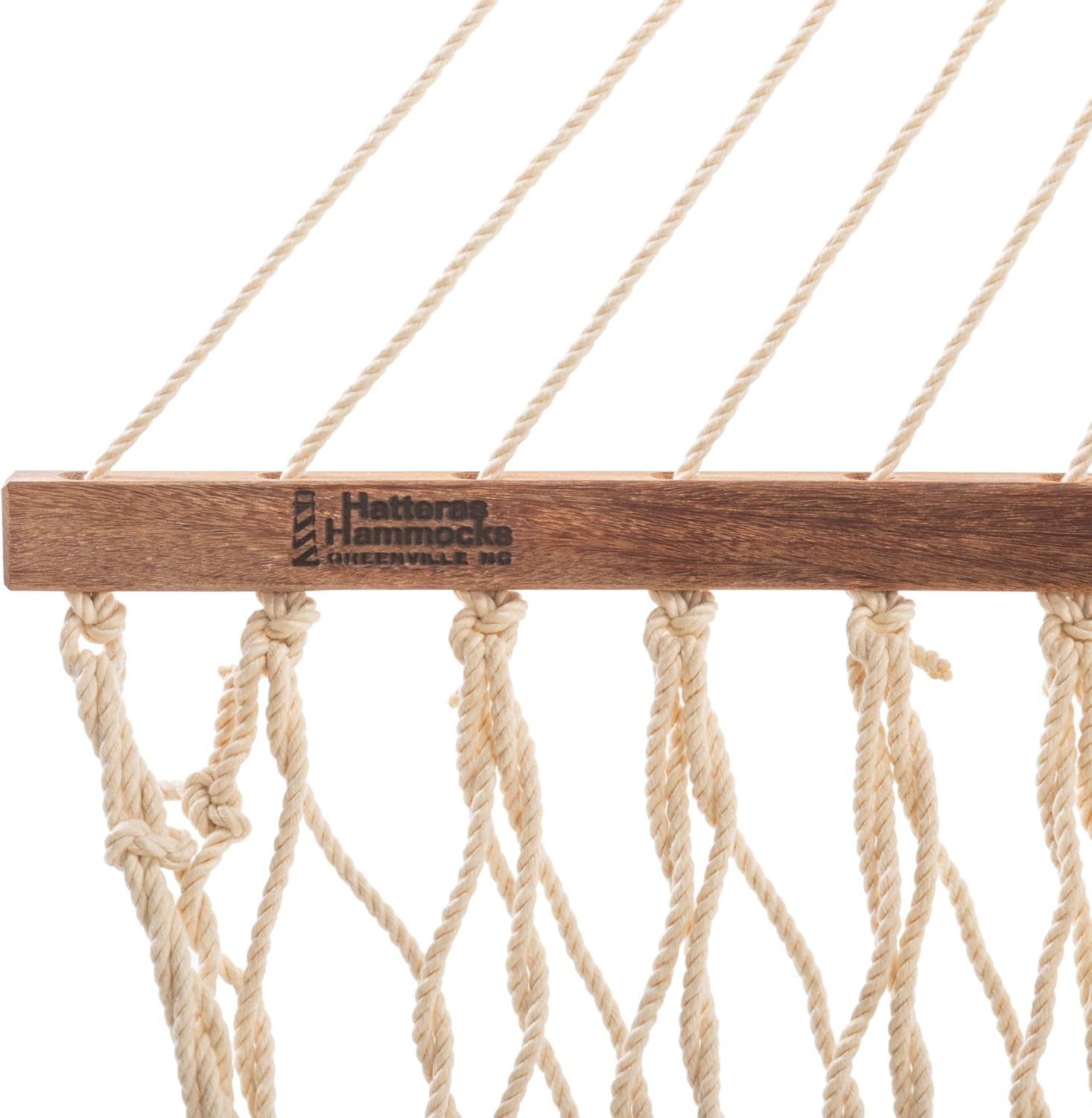 Hatteras Hammocks Deluxe Oatmeal Duracord Rope Hammock with Free Extension Chains & Tree Hooks, Handcrafted in The USA, 450 LB Weight Capacity, 13 ft. x 60 in